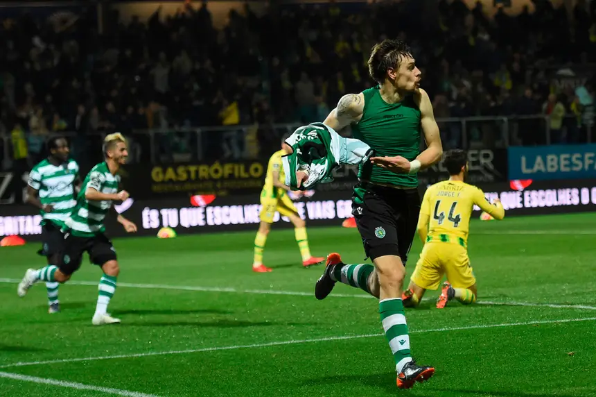 Pedro porro (sporting cp) remate com o pé direito no coração da área sporting cp 1, tondela 0.